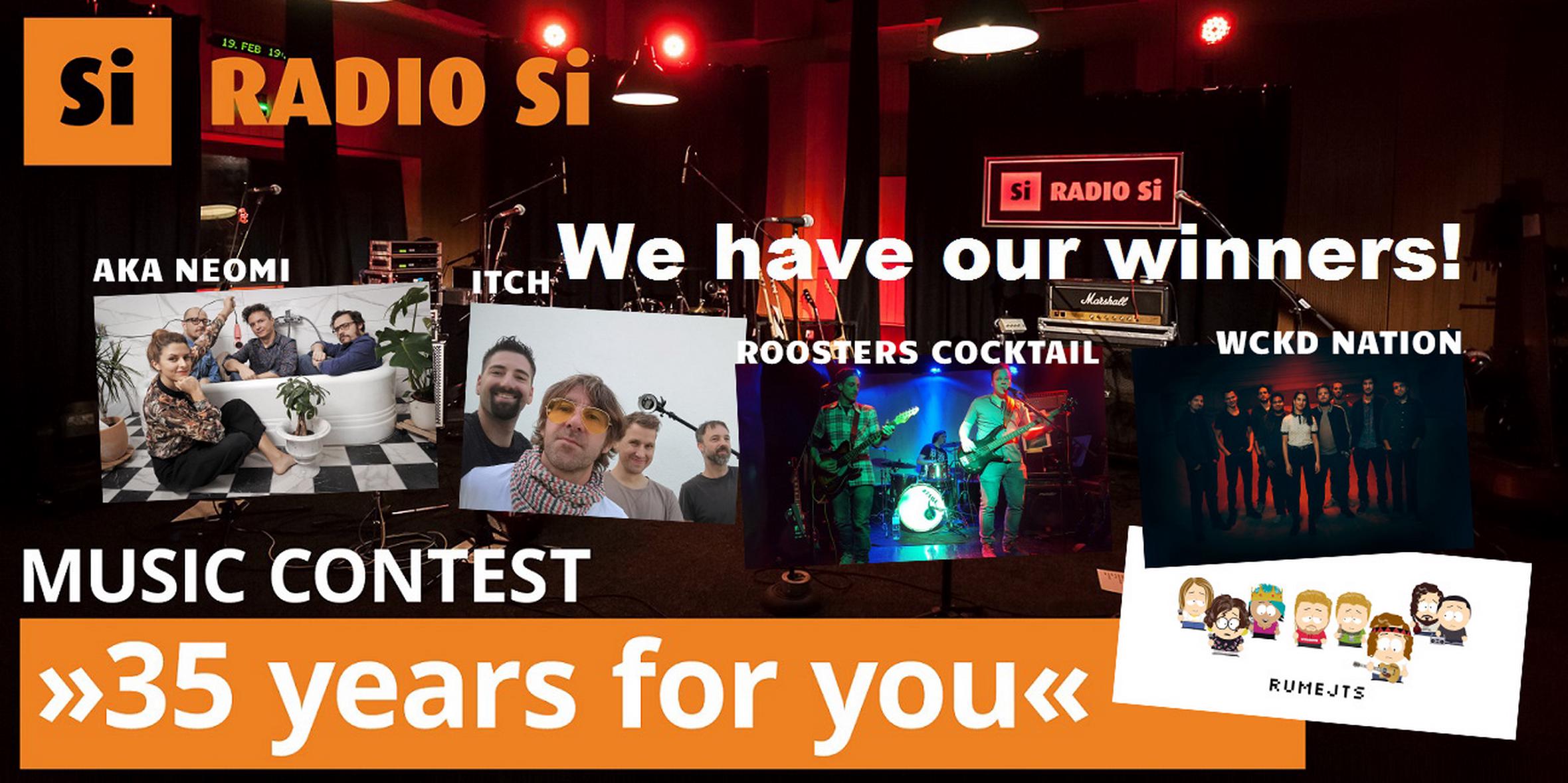 Na glasbeni natečaj "35 years for you" Radia Si, je preko 70 izvajalcev poslalo več kot 140 novih skladb. Komisija izbrala kar 5 zmagovalcev!